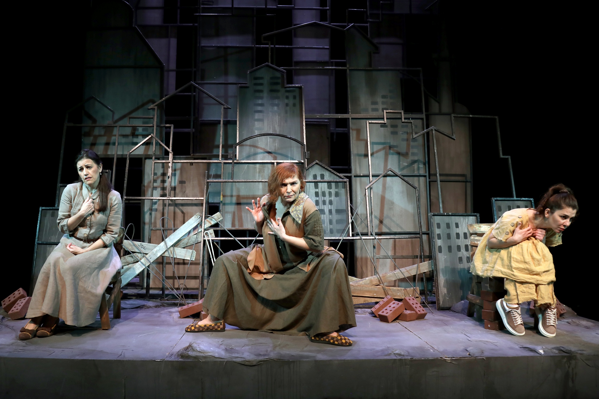 Murat Mahmutyazıcıoğlu’nun yazdığı, anlatı geleneğiyle tiyatronun çağdaş araçlarını buluşturan oyun, “üç anlatıcı’lı bir kurguyla ilerliyor. Mekânın birliğine hikâyenin parçalanmışlığı ekleniyor ve farklı bir kurgu ortaya çıkıyor. Bu kurgu, geçmiş, gelecek ve şimdide çakılı kalmış üç hikâyeyi birleştiriyor. Zamanla üç hikâye de tekleşiyor ve ‘kadın’ın hikâyesine dönüşüyor…